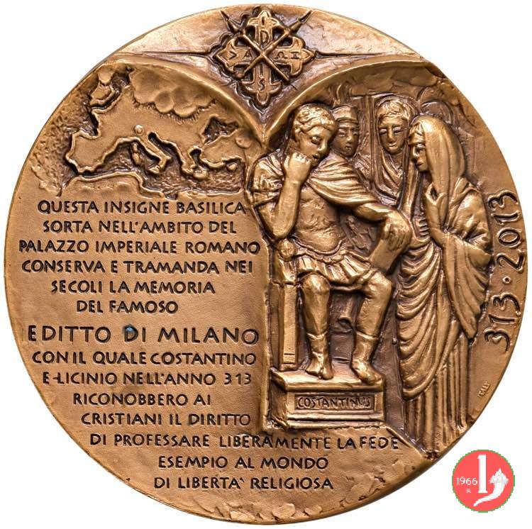 San Giorgio al Palazzo 2013 Dritto: SAN GIORGIO AL PALAZZO • MILANO Vista anteriore della chiesa di San Giorgio al Palazzo a sx sopra alla facciata: CDF a dx presso il bordo: CIMAROSTI a dx presso il bordo: 313-2013 nel campo a sx: QUESTA INSIGNE BASILICA = SORTA NELLAMBITO DEL = PALAZZO IMPERIALE ROMANO = CONSETVA E TRAMANDA NEI = SECOLI LA MEMORIA = DEL FAMOSO = EDITTO DI MILANO = COL QUALE COSTANTINO = E LICINIO NELL'ANNO 313 = RICONOBBERO AI = CRISTIANI IL DIRITTO= DI PROFESSARE LIBERAMENTE LA FEDE = ESEMPIO AL MONDO= DI LIBERTÀ RELIGIOSA | |