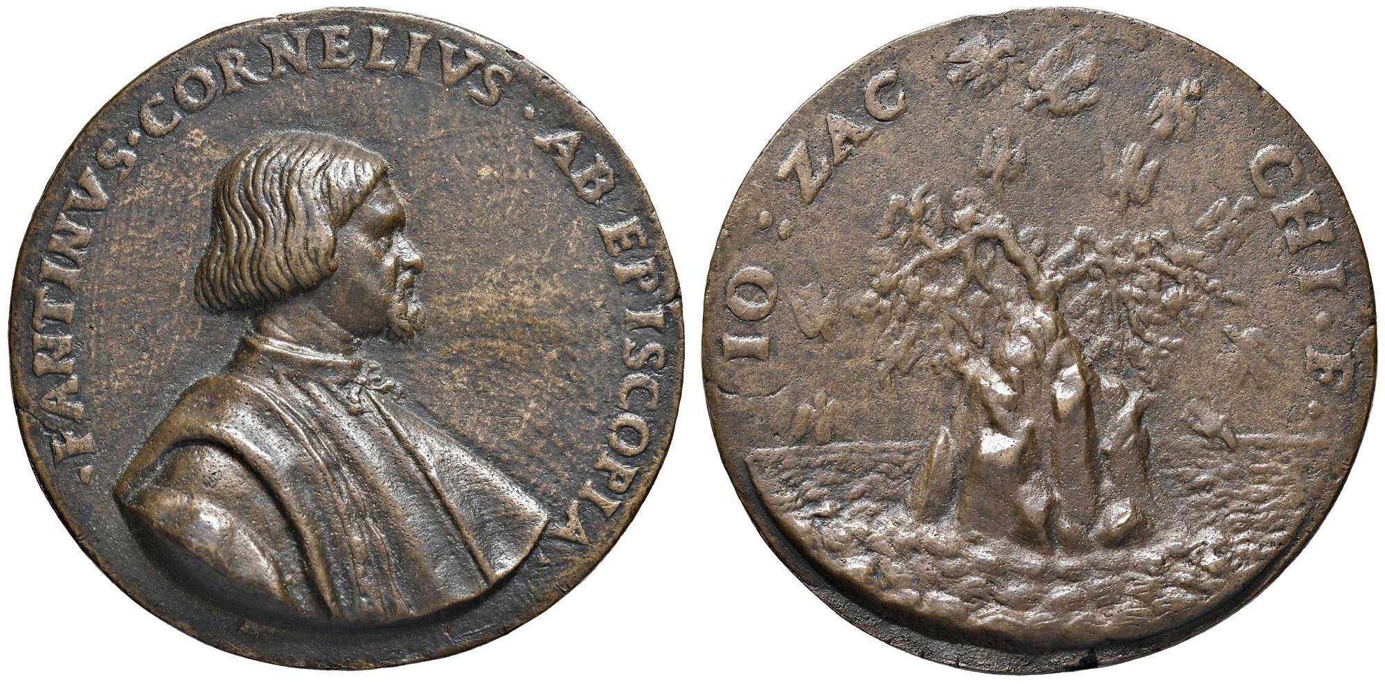 Fantino Corner "Dalla Piscopia" -V292 Obverse: FANTINVS • CORNELIVS • AB • EPISCOPIA • busto a dx con toga Albero su una roccia entro mare in tempesta |