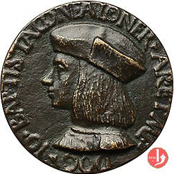 Tommaso Moro 1527 -V270 Obverse: THOMAS MAVRV VENETVS VERONAE PRAEFECTVS busto a dx con berretto e toga con stola in alto: MD • XX _ VII la Fenice ad ali spiegate tra le fiamme in basso, circolarmente: IO • MARIA • POMEDELLVS • VERONEN • | |