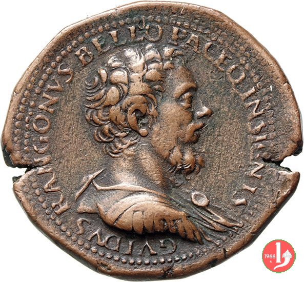 Francesco Negri 1537 -V297 Obverse: FRANCISCVS • NIGER • BASSANENSIS • MDXXXVII • busto as x con capelli raccolti e giubba Ercole gradiente a sx regge due semifusti di colonna | |