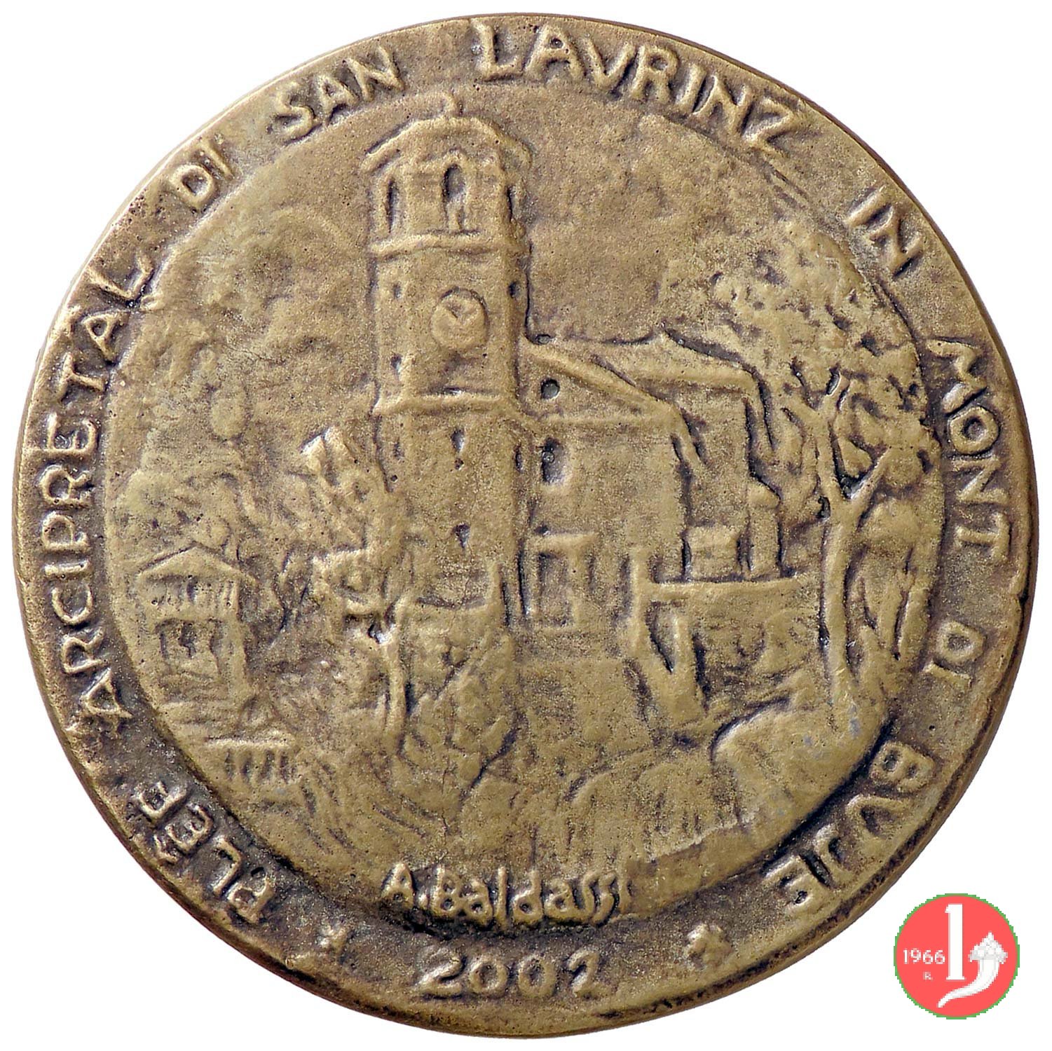 Buja - San Lorenzo 2002 Obverse: SOL ET LVNA LAVDATE DEVM ✠ Architrave con arco a sesto acuto del Portale principale della Chiesa di San Lorenzo Vista dell Chiesa di San Lorenzo in basso: A. BALDASSI |