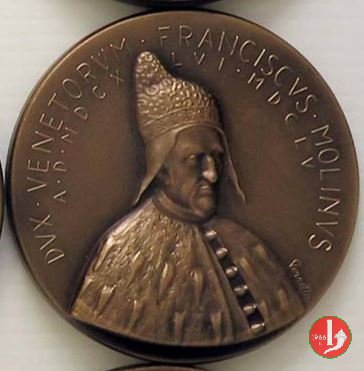 Palmanova - ANP 400° Fondazione Palmanova 1993 Obverse: DVX • VENETORVM _ FRANCISCVS • MOLINVS in seconda riga: A • D • MDCX _ XXI • MDCXLVI busto di 3/4 a dx di Francesco Molino con corno e manto dogale a dx presso il bordo: VERZETTA (?) vista di Palazzo con arcate sopra: 1986 • X in basso: Stemma sormontato da corno Dogale |