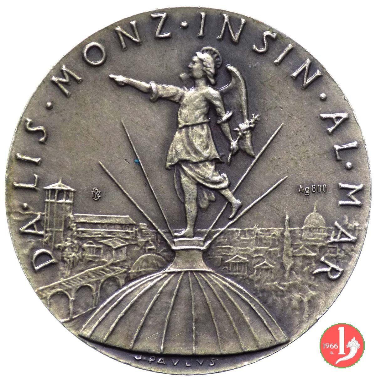 Tempio Nazionale del Perpetuo Suffragio ai Caduti Obverse: TEMPIO • NAZIONALE • DEL • PERPETVO • SVFFRAGIO • DEI • CADVTI • DI • GUERRA Vista del Tempio col campanile in esergo: ROMAGNOLI busto d'angelo volto a dx sorregge testa di defunto e mira a dx Croce raggiante |