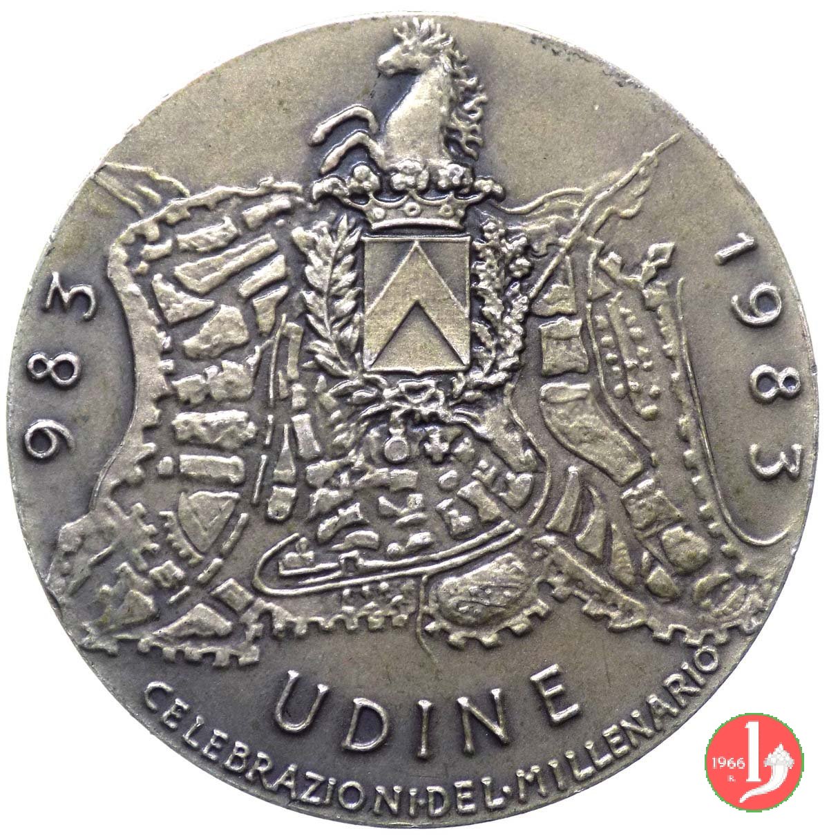 1000° Città di Udine 1983 Obverse: DAL • LIS • MONZ • INSIN • AL • MAR L'Agnul dal Friul posto sul campanile della Chiesa di Santa Maria di Castello a Udine