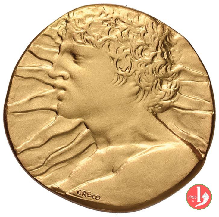 Regione Lazio-Trentennale Liberazione 1974 Obverse: busto di guerriero a dx, regge spada in basso: GRECO nel campo, su fondo irregolare: 1943-44 = 1973-74 sotto: S. JOHNSON |