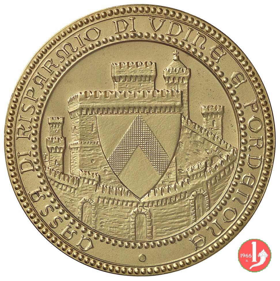 Cassa di Risparmio di Udine e Pordenone Obverse: CASSA DI RISPARMIO DI UNDINE E PORDENONE • entro cornice circolare perlinata: grade Stemma sulla vista del Castello di Udine a sx presso il bordo interno: SJ |