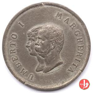 Ascesa al Trono - U coronata Obverse: A S. M. UMBERTO I RE D' ITALIA busto a sx con uniforme e collare della SS. Annunziata sotto: L. INSENGA entro cerchio perlinato: U contenente 1° coronata tra rami d'alloro legati da nastro in basso |