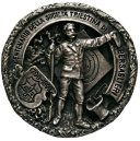 Assedio di Osoppo 1848 Obverse: CCCL ITALI CONTRO L'AUSTRIA = INAUGURAVANO Stemma coronato entro collare della SS. Annunziata, tratto dal tricolore di Osopo dedicato a Carlo Alberto e dipinto durante l'assedio dal capitano d'artiglieria Leonardo Andervoli nel campo, entro rami d'alloro legati in basso da nastro e sormontata da corona: AL RE = CAR. ALB = 1848 = XI GIU sotto ai rami: LAS |
