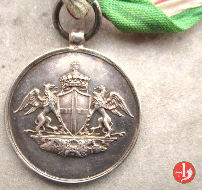 Verso: ragazzo nudo, genuflesso di 3/4 a dx, regge scudo Savoia tra rami d'alloro e quercia