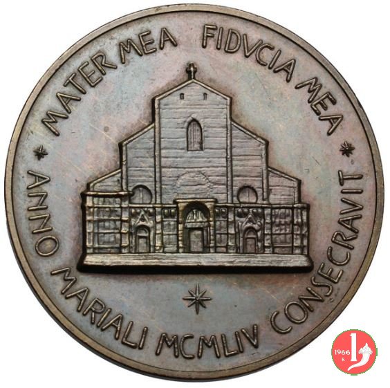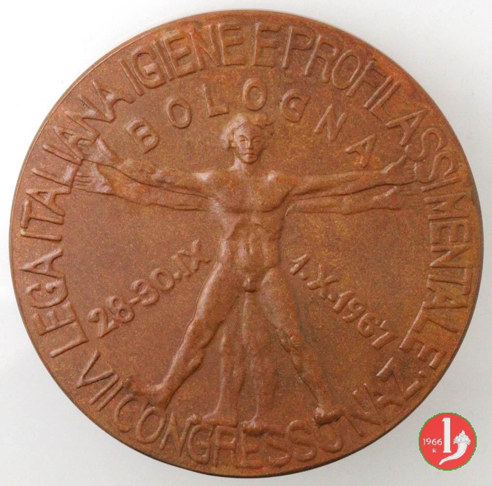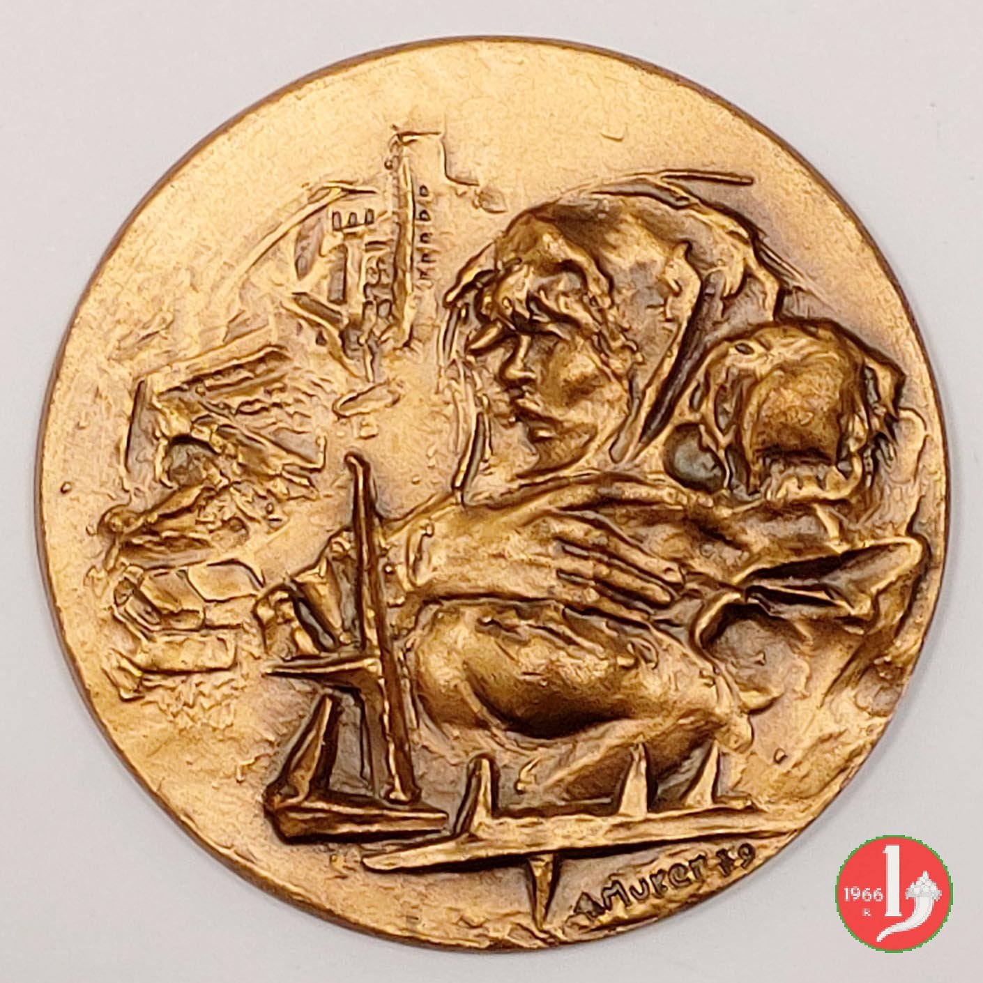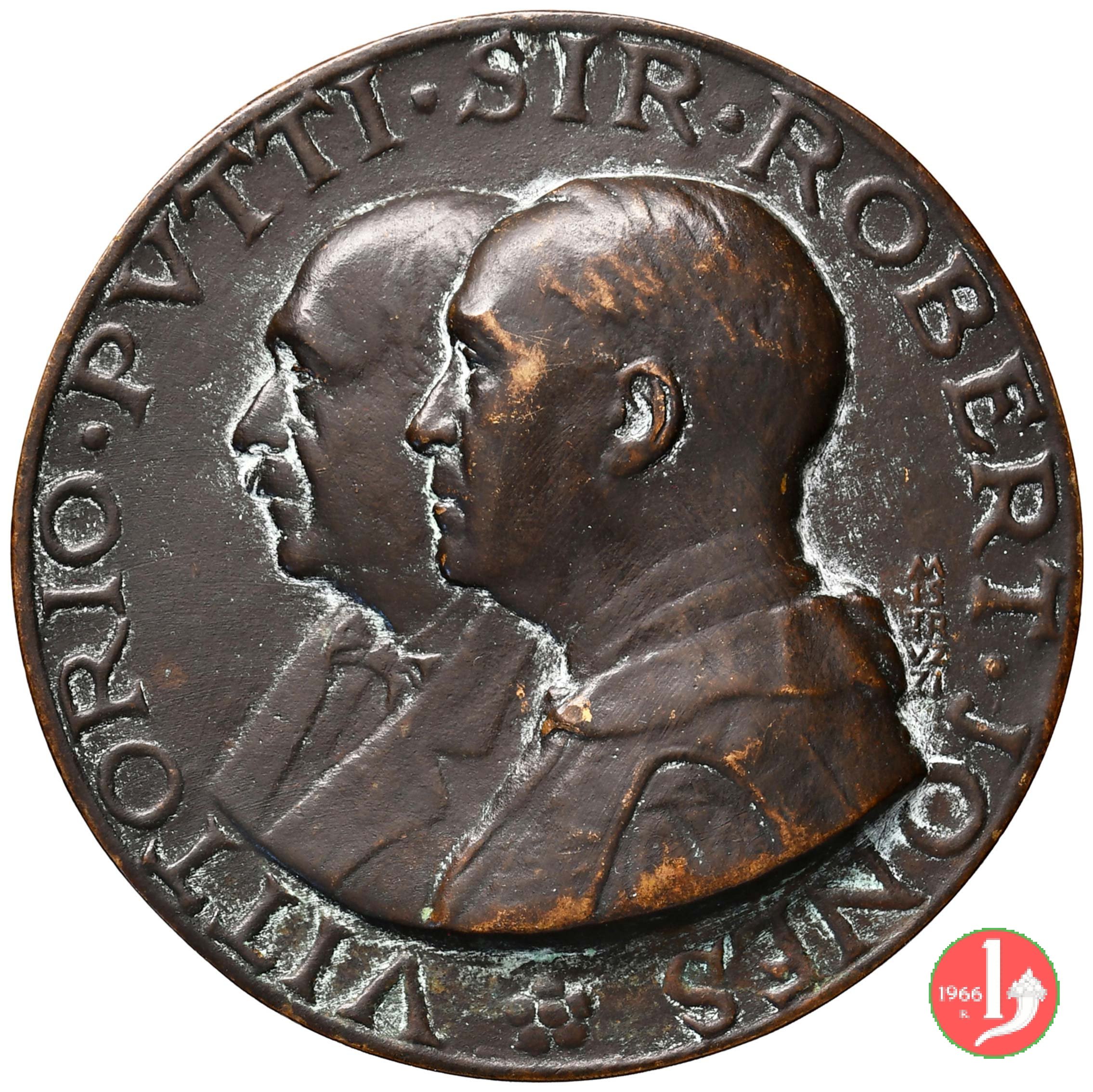 Verso: nel campo tra rami d'alloro: INTVS • DISPICIENS = CVNCTOS • IDEM • IN • CVTE • MORBOS = ANTIQVIS • DOCTVS = RES • DOCET • ARTE • NOVAS = - = ANNO • MCMXX = POST • INITVM • MAGISTERIVM • XI = SODALES • DISCIPVLI • AMICI = ITALI • EXTERIQVE • D • D