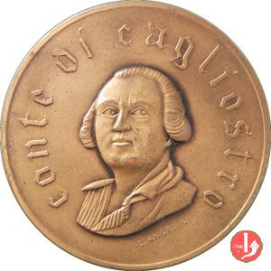 Cagliostro a San Leo Dritto: CONTE DI CAGLIOSTRO busto di 3/4 a sx sotto: G. ANGELINI Finestra con grata sotto: CELLA DEL POZZETTO a dx, verticalmente: G. ANGELINI |