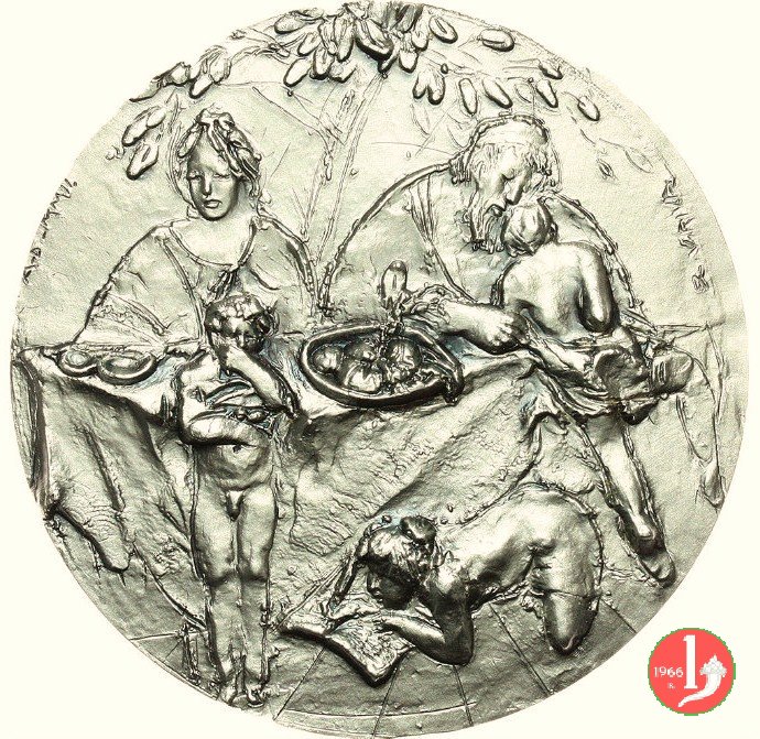 Nozze di Carla Vento e Paolo Bersani 1991 Dritto: CARLA • VENTO • PAVLVS • BERSANI (quecia) busti accollati a sx sul contorno circolarmente: QVOD • DEVS • CONIVNXIT • HOMO • NON • SEPARET sotto: BESSANI (?) |