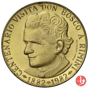 100° San Giovanni Bosco a Rimini 1982 Dritto: CENTENARIO VISITA DON BOSCO A RIMINI = - 1882 - 1982 - busto di 3/4 a sx in basso, a dx: GUIDO ANGELINI Vista dell'Arco di Augusto e del Ponte di Tiberio in basso: ARIMINUM in basso, a dx: S. ANGELINI |