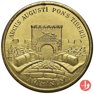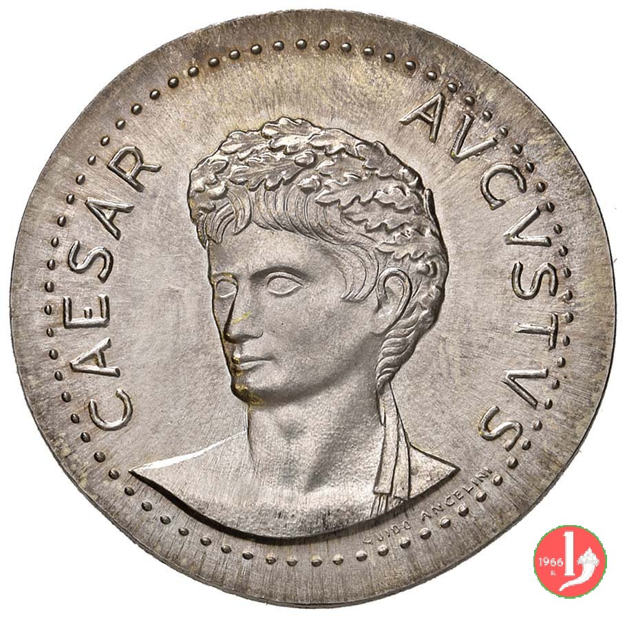2000° Arco di Augusto 1974 Dritto: CESAR _ AVGVSTVS busto di Cesare Augusto di 3/4 a sx con serto d'alloro in basso a dx: GUIDO ANGELINI vista dell'Arco di Augusto a Rimini in esergo: RIMINI 1974 |