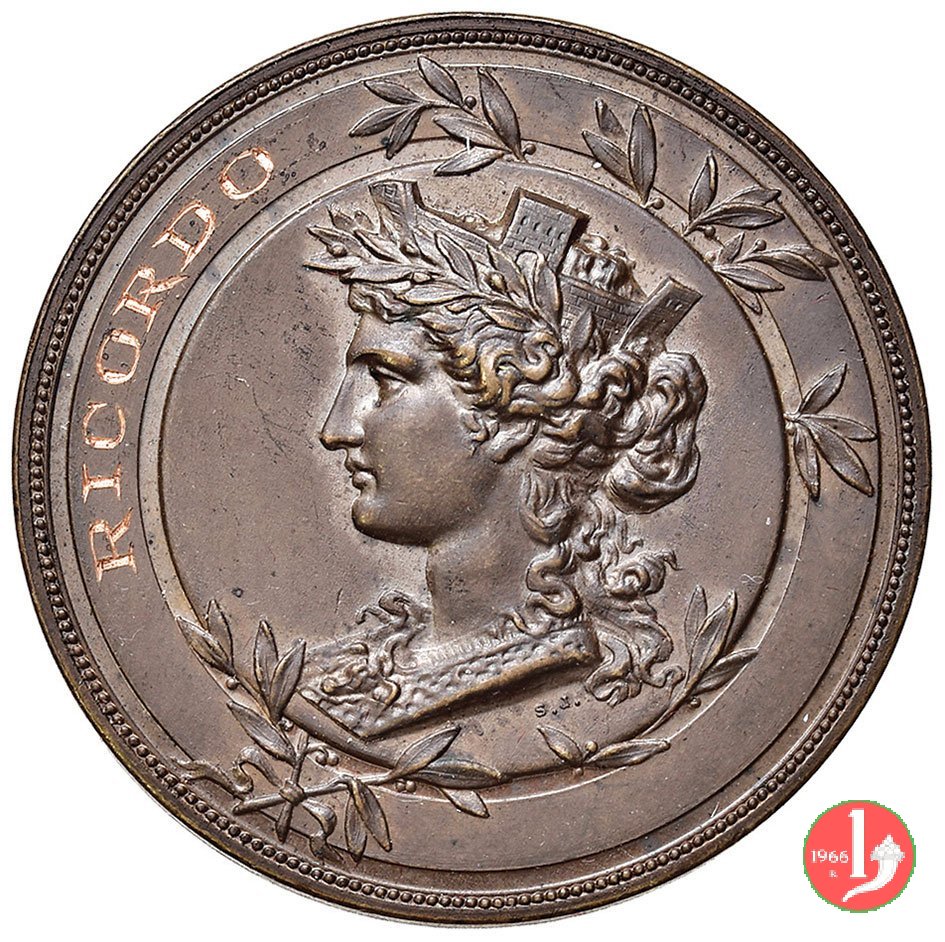 Esposizione Romagnola Belle Arti 1901 Dritto: testa laureata e turrita entro patera posta su ramo d'alloro sotto: S.J. sul disco esterno circolarmente ed inciso: RICORDO targa su ramo d'alloro |