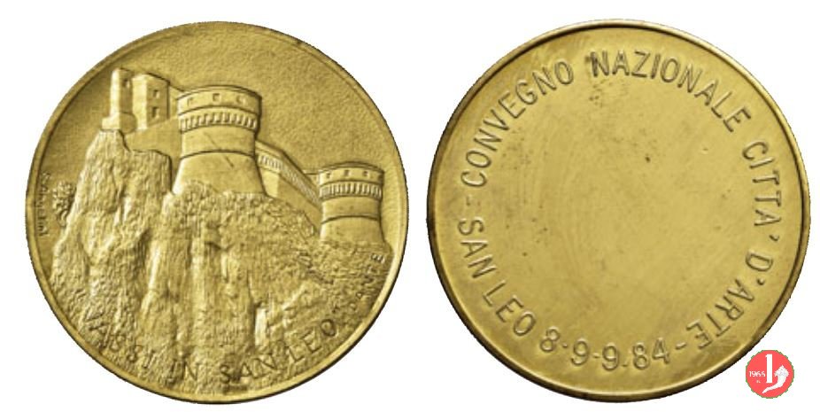 San Leo - Convegno Nazionale Città d’Arte 1984 Dritto: Vista del Forte di San Leo in basso, circolarmente: VASSI IN SAN LEO _ DANTE a sx presso il bordo: S. ANGELINI campo vuoto |