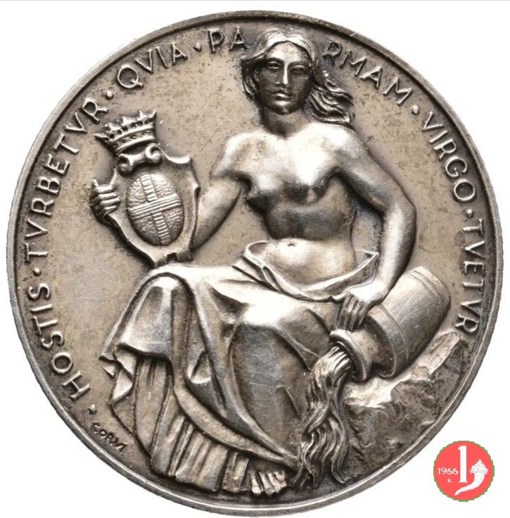 sotto: EVASIO • COLLI • ARCHIEP. = MAGNO • PRIORI = ANNO • AB • INITO = SACERDOTIO • L = PARMAE = V. NOV • MCMLV