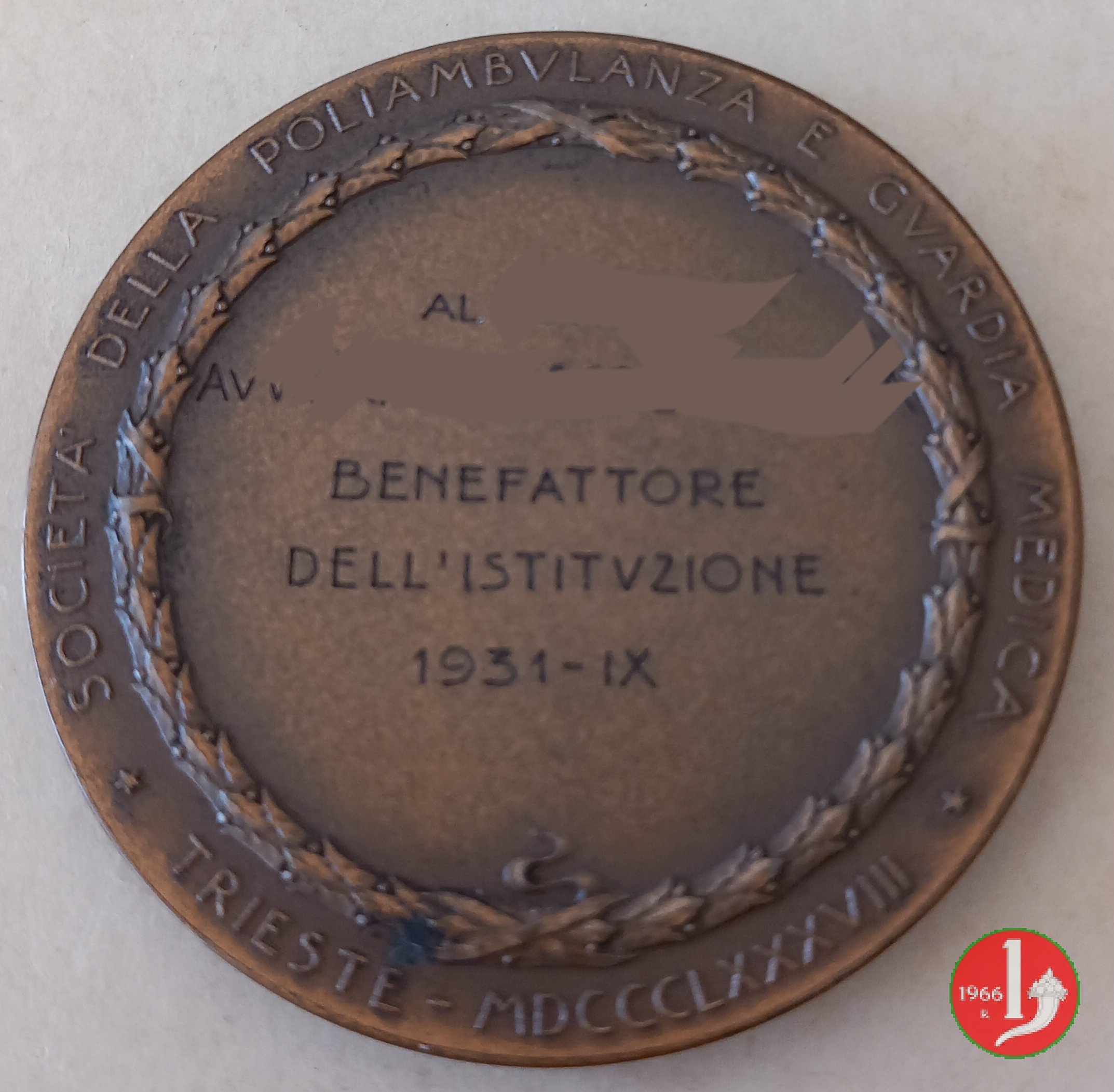 Verso: nel campo: NEL XXV ANNO = DELLA SOCIETA' ISTRIANA = DI ARCHEOLOGIA = E STORIA PATRIA = AL BENEMERITO PRESIDENTE = SOCI E AMICI = D.D.