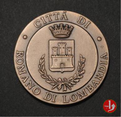 entro cerchio continuo: Stemma turrito su rami d'alloro di Romano di Lombardia