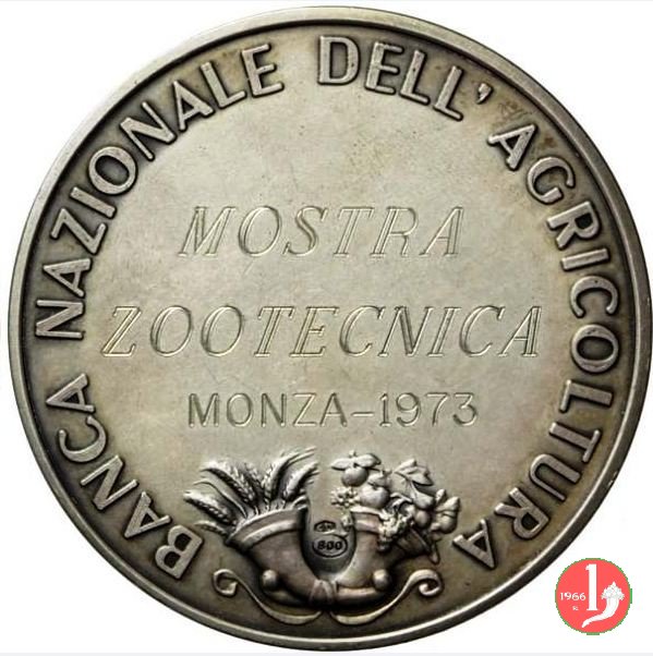 in basso, a sx: S. LOTTI nel campo, inciso: MOSTRA = ZOOTECNICA = MONZA - 1973 in basso: cornucopie decussate con spighe e frutti |