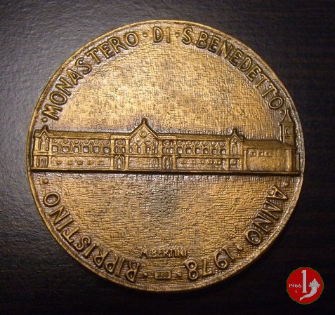 Cassa di Risparmio di Pisa - Monastero S. Benedetto 1978 Obverse: • • CASSA • DI • RISP _ ARMIO • DI • PISA • • figura allegorica, velata, seduta di fronte, regge frutti in grembo Prospetto del Monastero in basso: M. BERTINI |