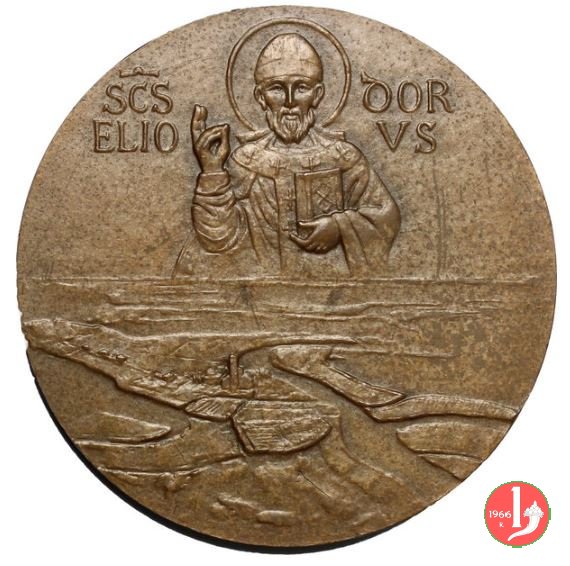 Verso: busto nimbato di Sant'Eliodoro benedicente di fronte, sormonta la vista aerea del Torcello