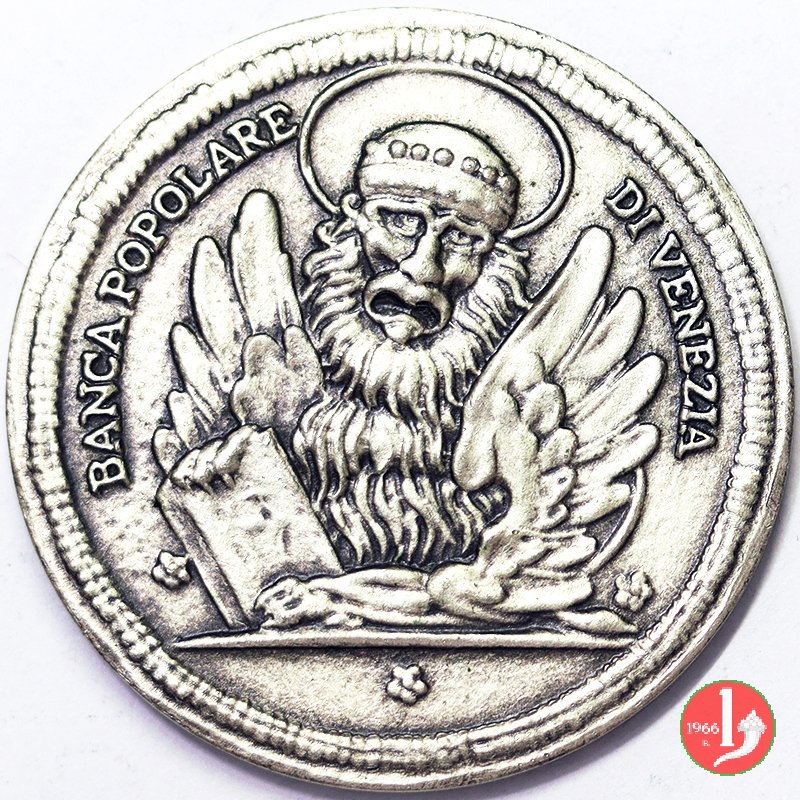 Verso: San Marco nimbato e benedicente di fronte, regge pastorale tra due Angeli e sormonta la facciata della Basilica di San Marco