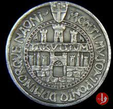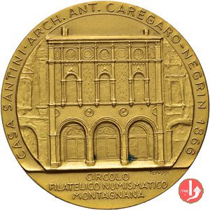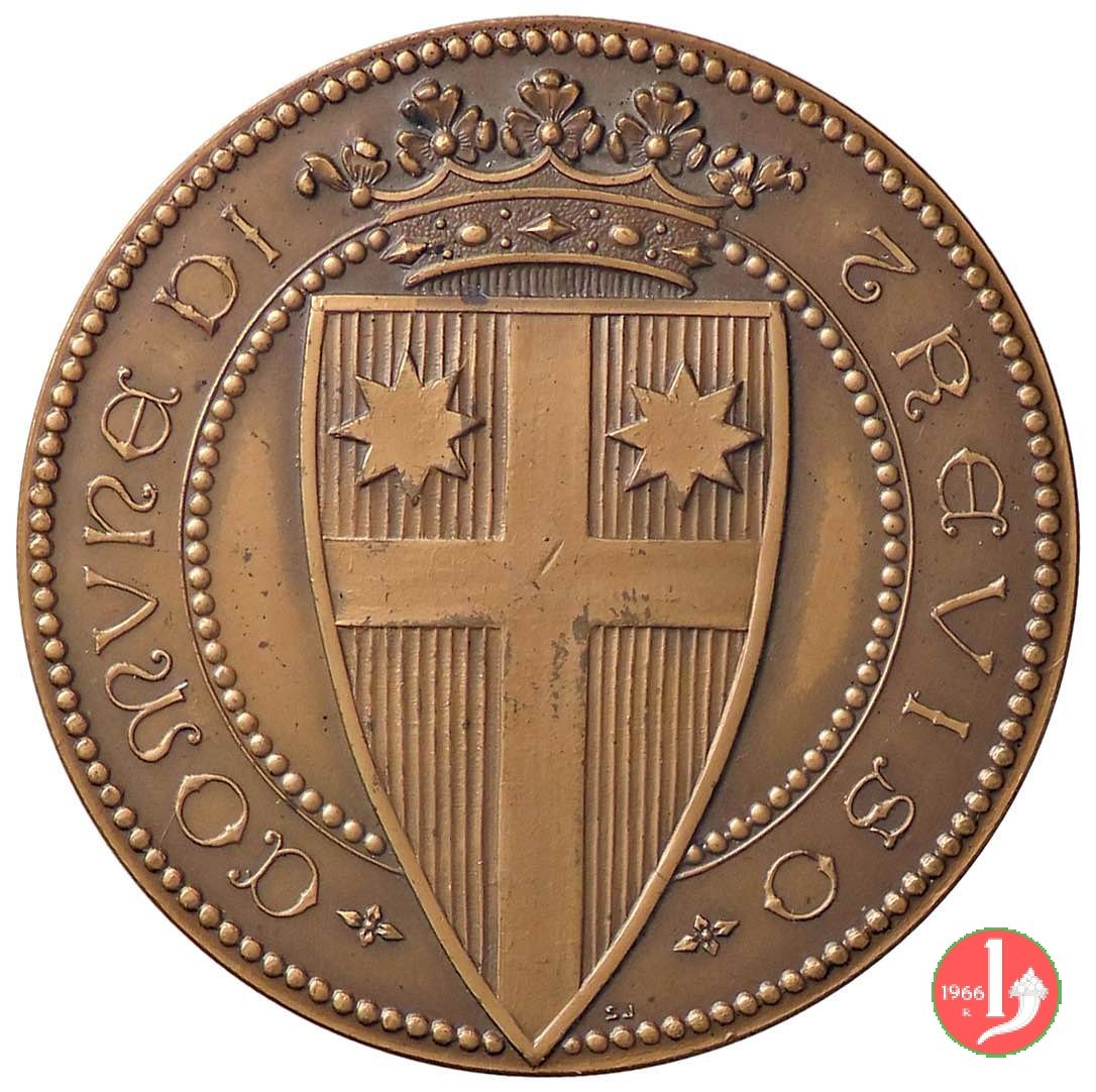 Premio del Comune di Treviso Dritto: MONTI • MUSONI • PONTO • DOMINORQUE • NAONI entro cerchio perlinato sormontato da Stemma della Città: Castello con tre torri tra bandiere e sull'architrave del portone d'ingresso: TARVISIVM in basso, a sx: S.J. entro cerchio perlinato: cornice eptalobata ornata da margherite con spazio per dedica |