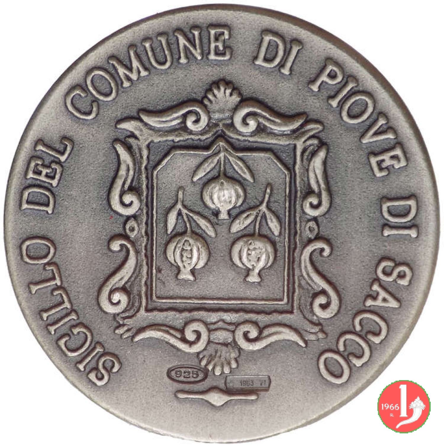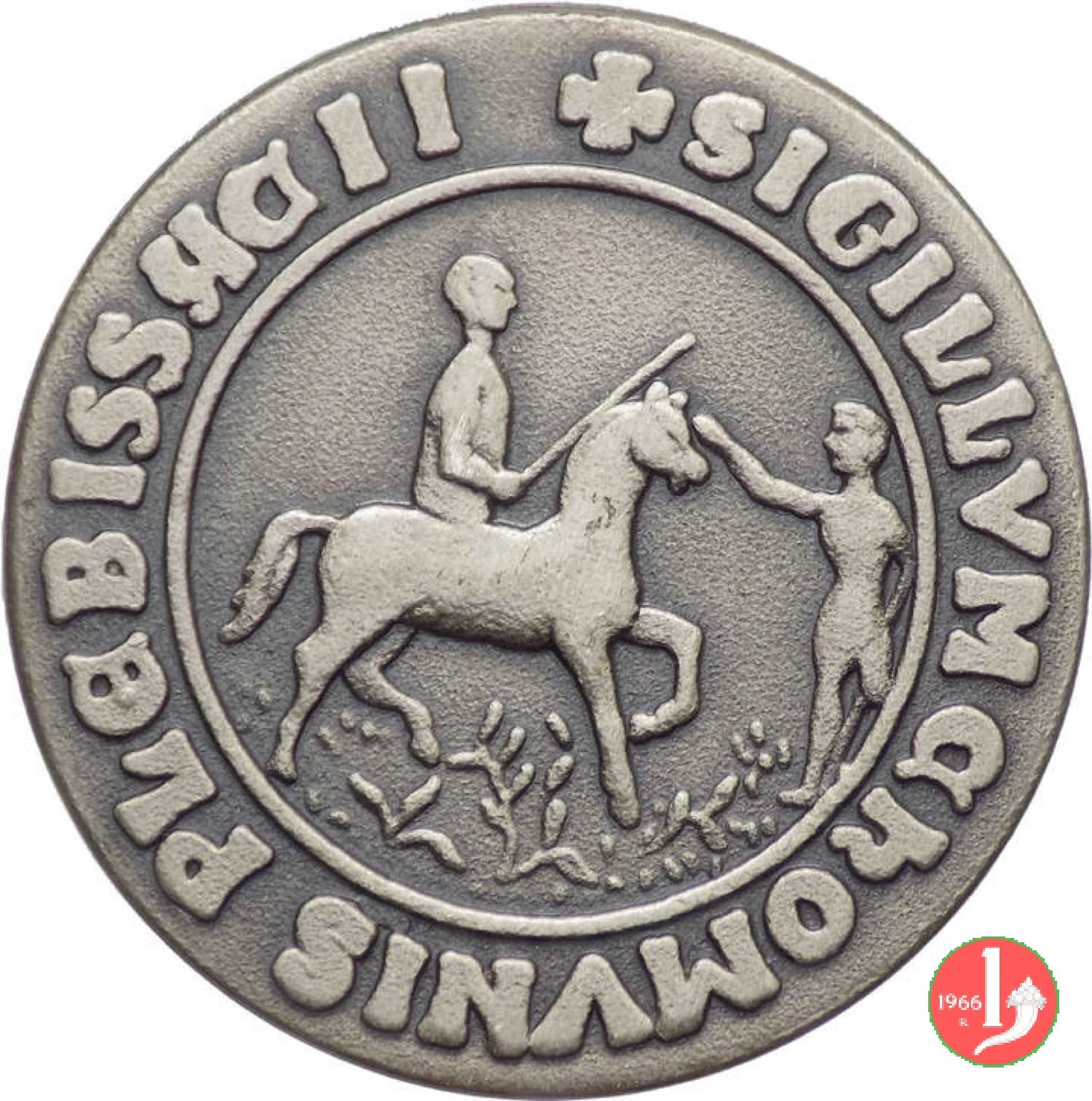 Comune di Piove di Sacco Dritto: SIGILLVM COMMUNIS PLEBISSHACII ✠ entro cornice circolare continua: Cavaliere verso dx è salutato da fanciullo in piedi Stemma tra volute co tre melogani capovolti |