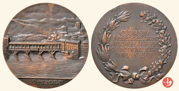 Ponte Vecchio di Bassano 1948 Dritto: Veduta del Ponte degli Alpini in legno di Bassano con parte della Città in esergo: A • D • MCMXLVIII in basso: BERTONI in basso: ENEA MILANO |