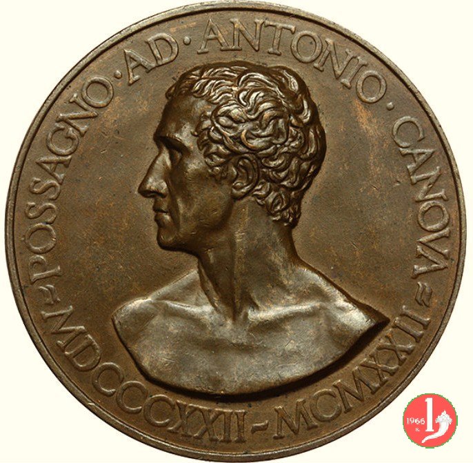 Antonio Canova - Le Tre Grazie 1922 Dritto: POSSAGNO • AD • ANTONIO • CANOVA = =MDCCCXXII-MCMXXII= busto nudo a sx ai lati, nei campi: DARAI _ SPIRTO = ALLE _ GRAZIE = (FOSCOLO) sotto: MISTRVZZI |
