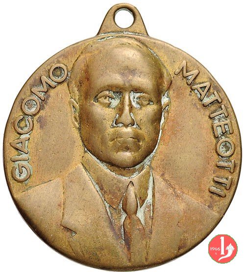 Giacomo Matteotti Dritto: a sx circolarmente: L'IDEA IN ME NON MUORE = 10-6-24 = G. MATTEOTTI busto di fronte con giacca, camicia e cravatta presso ramo di palma e di quercia |