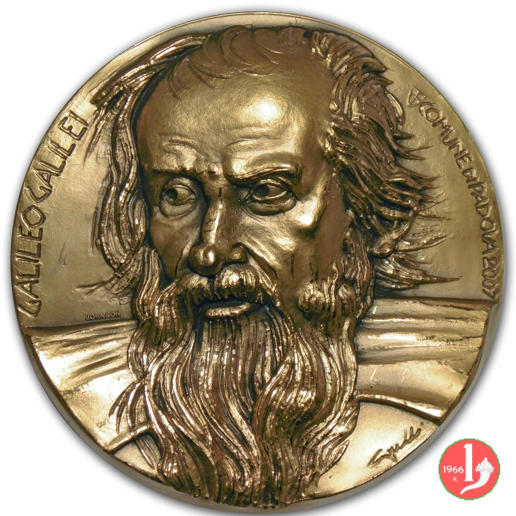 Galileo Galilei a Padova 2007 Dritto: GALILEO GALILEI _ COMUNE DI PADOVA 2007 busto di 3/4 a sx con lunga barba sopra alla spalla sx: JOHNSON in basso: GRILLI figura di donna nuda, distesa con sette bambini tra le stelle in alto, a dx: GRILLI |