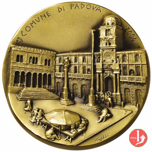 Comune di Padova 2006 Dritto: due figure in piedi tra la folla in basso: GRILLI Vista di Piazza dei Signori a Padova con una bancarella in basso: GRILLI a dx, presso il bordo: JOHNSON |