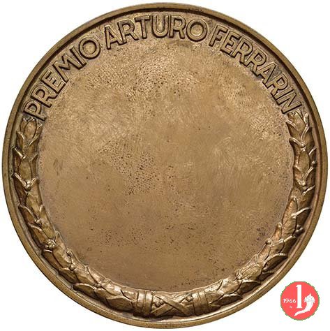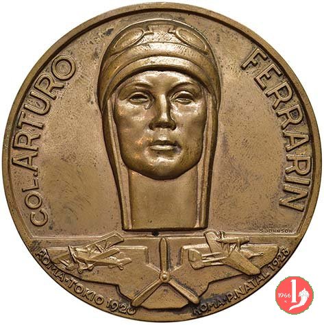 Thiene - Premio Arturo Ferrarin Dritto: COL. ARTURO _ FERREARIN testa di fronte con cuffia da pilota su tre velivoli in esergo in basso a dx, sopra la linea dell'esergo: S. JOHNSON in basso, circolarmente: ROMA • TOKYO 1920 _ ROMA • P. NATAL 1928 campo vuoto per dedica |