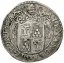 Quarto di Scudo, 1564, 1565 Dritto: ALFONSVS II FERRARIAE DVX Busto a destra, corazzato, a testa nuda; sotto il busto 18 p Marte, elmato, seduto a sinistra, con lancia e palma nella sinistra, in atto di porre con la destra protesa un elmo sulla testa di una donna genuflessa che gli presenta una cornucopia. In esergo: scudetto poligonale con l'aquila estense fra 15 65. | |