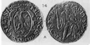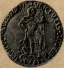 Sesino con San Antonio Dritto: Anepigrafe. Aquila spiegata, con la testa rivolta a destra e le ali abbassate. In esergo 1578 Il Santo, nimbato, in piedi di fronte, col porchetto a sinistra, tiene nella destra protesa il fuoco a nella sinistra il bastone. | |