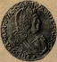 Quarto di Scudo Dritto: ![]() • FRANCISCVS • • ![]() • • ESTENSIS • + • Busto, a destra, corazzato, a testa nuda. Stemma ovale, con l'aquila estense spiegata e con la testa rivolta a destra, entro cartella accartocciata e coronata. | |