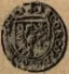 Sesino col gallo Dritto: • GAL • PIC • II • MIR • CON • Q • D Stemma ottagonale inquartato, caricato da scudetto Pico scaccato. Gallo su caduceo alato, volto a sinistra. | |