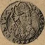 Mezzo denaro col leone rampante Dritto: S • POSID ![]() PRO • MISan Possidonio mitrato, stante di fronte, benedice con la mano destra, e tiene il pastorale con la sinistra. Leone rampante a sinistra. | |