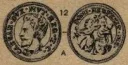 Quattrino con stemma Dritto: MVTINENSIS Stemma comunale in scudo ornato superiormente con un fiore. Verso: • S • GEM INIANVS • Il Santo nimbato e mitrato, seduto di fronte, benedice con la destra e tiene il pastorale nella sinistra. | |