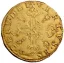 Scudo d'oro del sole detto dell'Assedio Dritto: • SENATVS POPVLVSQ • FLORENTINVS Scudo sannitico che racchiude il giglio fiorentino con due punti ai lati e sormontato da sole a sei raggi; contorno perlato Croce piana con legatura al centro. Nel I e II quarto sono impressi due globetti, nel III l'iniziale del nome del signore della zecca, nel IV il suo segno; cerchio perlato (+) simbolo zecchiere | |