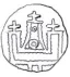 Denaro anonimo Dritto: + A(QUI)LE - GIA (globetto) P (globetto), il Patriarca rappresentato frontalmente, seduto su faldistorio, regge pastorale con la mano destra, nella sinistra libro. Verso: Tempio sostenuto da 5 colonne e 4 archi, con frontone triangolare (al di sopra globetto) e due torri terminanti con cupole e globetto. Tra le torri croce. | |