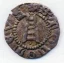Denaro con tre torri Dritto: Busto frontale di Vescovo con pastorale; sopra croce a globetti e a destra stella Verso: Tre torri sormontate da croce, sotto di esse un arco formato da due righe intercalate da globetti, al di sotto due globetti. | |