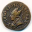 Denaro con PA e tempio Dritto: Busto frontale, alla sua destra lettera "P" e lituo; alla sinistra lettera "A" e stella a sei raggi. Verso: Tempio a tre torri, sormontate ognuma da croce. Nella torre centra finestrelle circolari | |