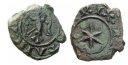 Tarí (lettera e stella) Dritto: Al centro lettera V sormontata da stella entro un cerchio lineare, intorno legenda cufica "Enrico Cesare Augusto", esterno legenda cufica indecifrabile Verso: Croce su lunga asta accostata dalle lettere IC XC e NI KA , senza globetti negli angoli superiori, intorno legenda pseudo cufica | |