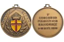 4° Congr. Geografico Italiano 1901 Dritto: Figura femminile in piedi regge mappamondo e sullo sfondo Duomo di Milano e monti con sole raggiante a sx, entro cartiglio ornato con ramo d'alloro: QVARTO = CONGRESSO GEOGRAFICO = ITALIANO = - = MILANO = MCMI sotto: Stemma della Città di Milano in basso: EB MOD. AC INC _ JOHNSON sotto: AVRORAE PAVLVS PATEFECIT REGNA NOVASQVE = IMPULIT AVSONIOS ORBIS ADIRE PLAGAS in basso: T. CREMONA PINX. | |