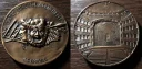 30° Lions Club di Cremona 1987 Dritto: composizione con violino al centro con spartito a dx tra tre medaglioni con i busti di celebri personaggi della storia di Cremona: MONTEVERDI CLAVDIO _ STRADIVARIVS _ ANONIVS CAMPVS 1525 1587 in basso: Stradivari scolpisce la cassa di un violino a dx presso il bordo: JOHNSON _ E. PRIORI in alto entro nastro il motto della città FORTITUDO MEA IN BRACHIO e nel campo il prospetto anteriore del Duomo di Cremona con il Torrazzo e a sx il braccio verticale con palla; insegna di Zanen de la bala (Giovanni Baldesio liberatore della città dal giogo imperiale) in esergo: 1987 | |
