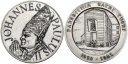 Visita in Belgio 16-05-1985 Dritto: JOANNES PAULUS P.P. II - BELGIUM 1985 busto di 3/4 a sx con berretto e veste talare nel campo a sx: B in basso a dx: J.KEVSTERMANS Stemma Papale su chiavi decussate e coronato da triregno in basso a dx: K attorno: otto Stemmi Cardinalizi sormontati da galeri e iscrizione delle Città |