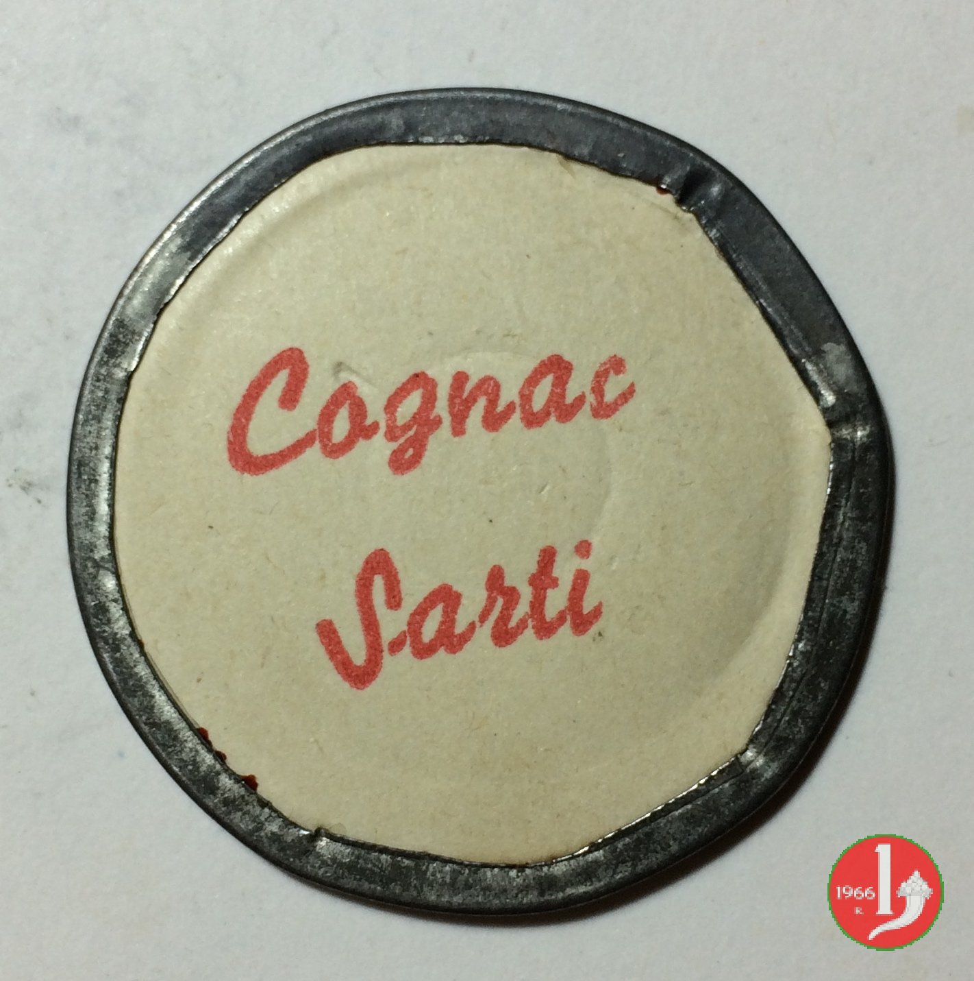 Verso: Scritta COGNAC SARTI in corsivo rossa su sfondo bianco